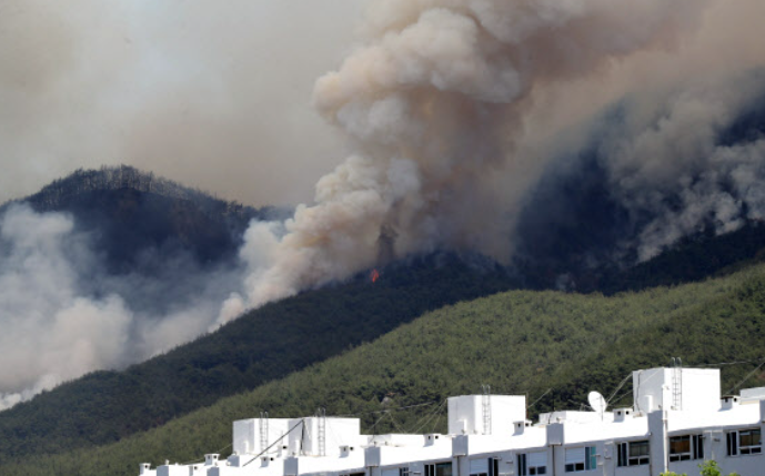 산불 확산속도가 빠르고 풍향 전환이 빨라 진화에 어려움을 겪었고